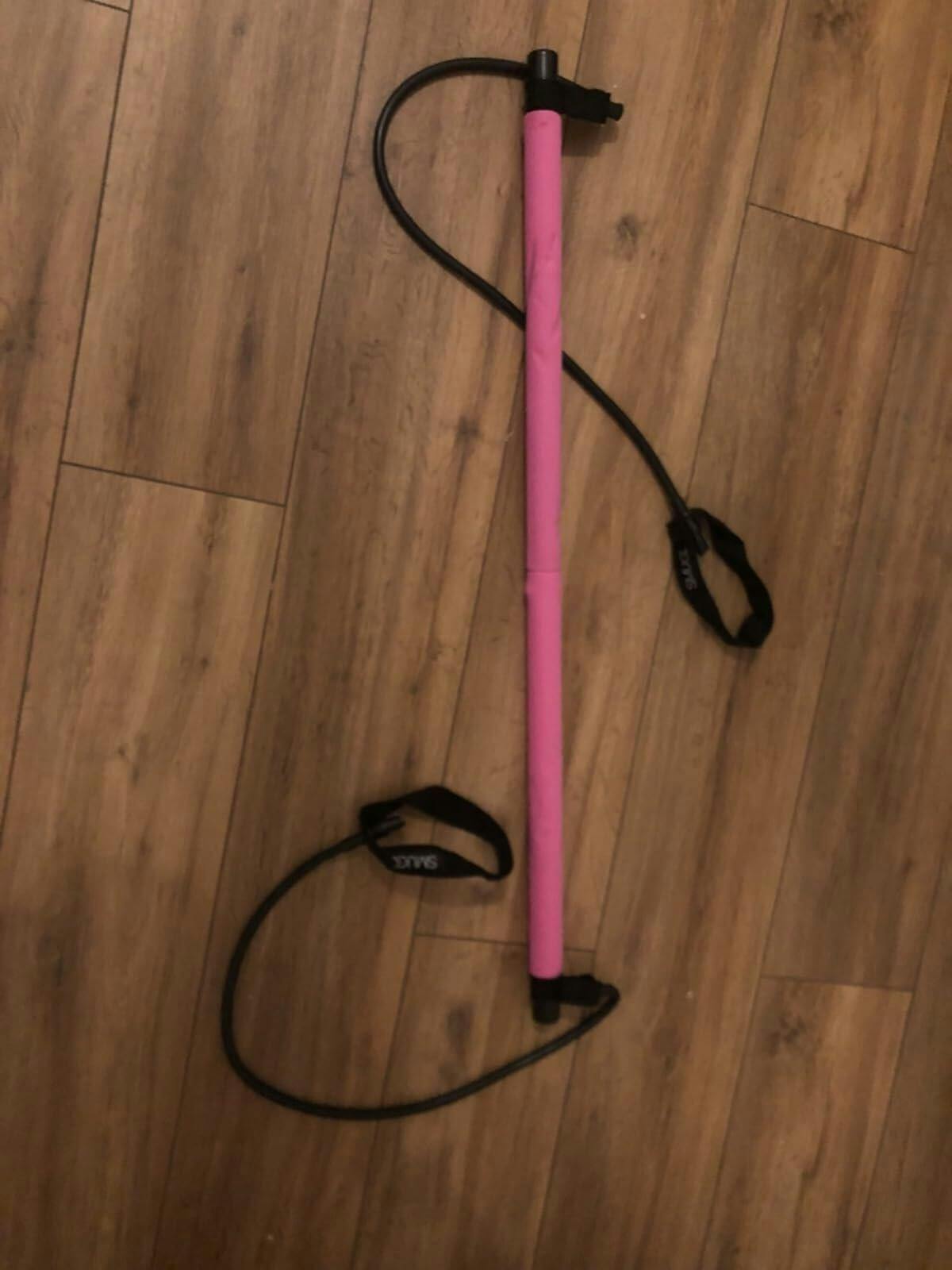 This versatile Pilates stick works like a barbell, tension rope, and rowing machine in one, helping you activate hips, legs, glutes, back, arms, and core with ease.